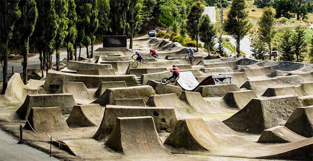 For those unfamiliar with Gorge Road Park, this beautiful spectacle is located in the always giving Queenstown on New Zealand’s South Island, also known for it’s outstanding snowfall and downhill Mountainbike Trails.trailrun1Photo: Red Bull Content PoolQueenstown Mountain Bike Club wanted to put NZ further on the map as an action sports destinations so they got together and designed and built this visual (yet extremely functional) masterpiece back 2008, people now come from all over to shred this fun park.trailrun2Gorge Road Park is open 7 days a week to the public and offers something for every level of rider, from mini table tops to 25 foot gaps and vertical wall rides to huge berms, it also has multiple lines and runs – you’ll never get sick of this place.trailrun3Photo: Sterling LorenceJust a flight away, grab your bike and your mate and get there!Pro BMX riders Mike Clark and Anthony Napolitan take a break from the concrete to go tear up the Gorge Road jump park in New Zealand, check it out: