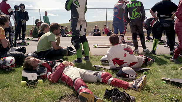 Directors Jaret Belliveau and Craig Jackson introduce us to two central characters in their film. One is a group of longboarders, many of them advanced in age, from Kimberley, B.C. Among them is Jody Wilcock, the DIY deck builder behind the lowered longboard designs that rival brands have aped. He and his friends, when not engaging in eminently entertaining exchanges, race down hills at high speeds, drink beer, smoke weed and, most importantly, manage not to give much of a shit about anything but skating.