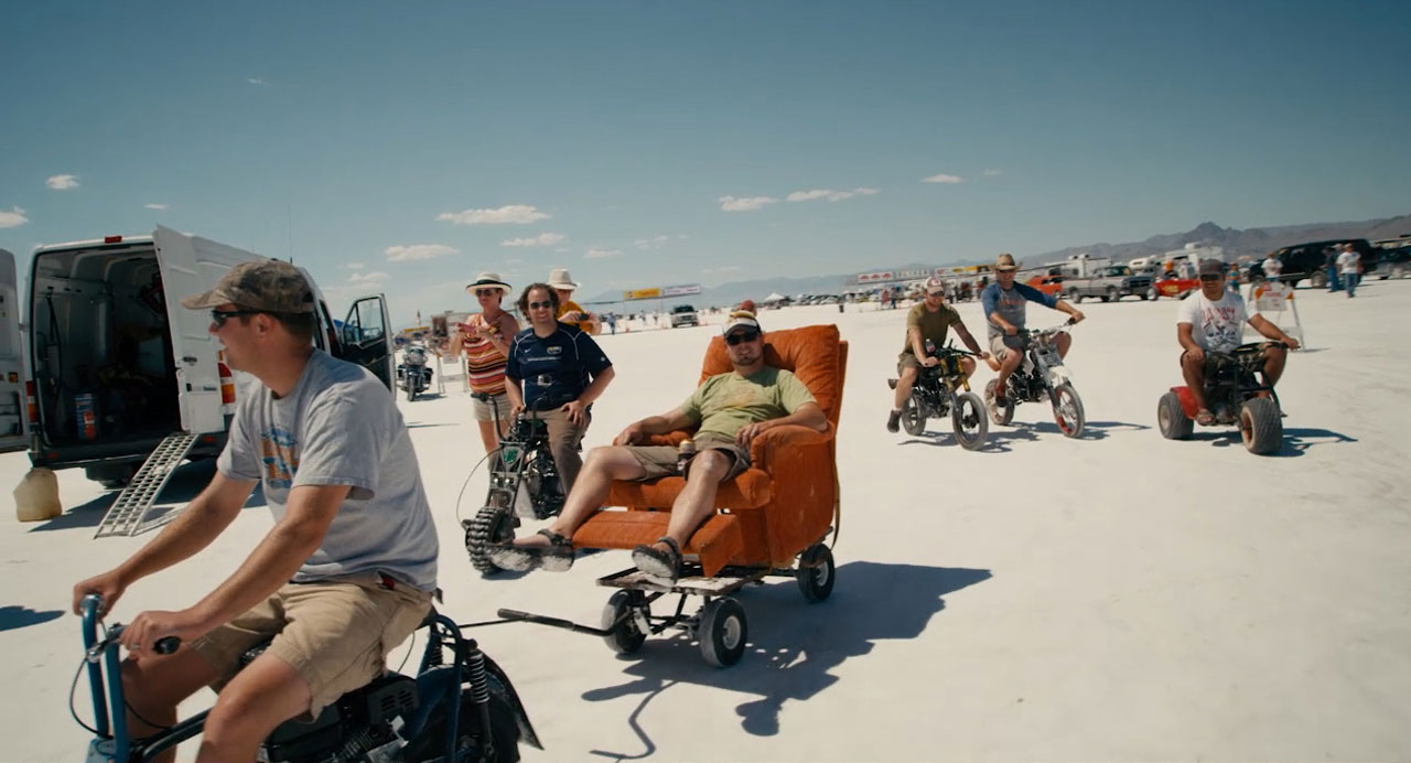 On Any Sunday, The Next Chapter pays homage to the motorcycle and those who ride, this scene in the film does just that featuring some of the coolest cats and motor vehicles in the business including champion racer Carlin Dunne who set out to break the world record speed on a motorbike hitting 350km/h (117 mph) only to fall short by only 11km/h as his engine blows up in the final seconds.Check out a collection of stills featured in the film: