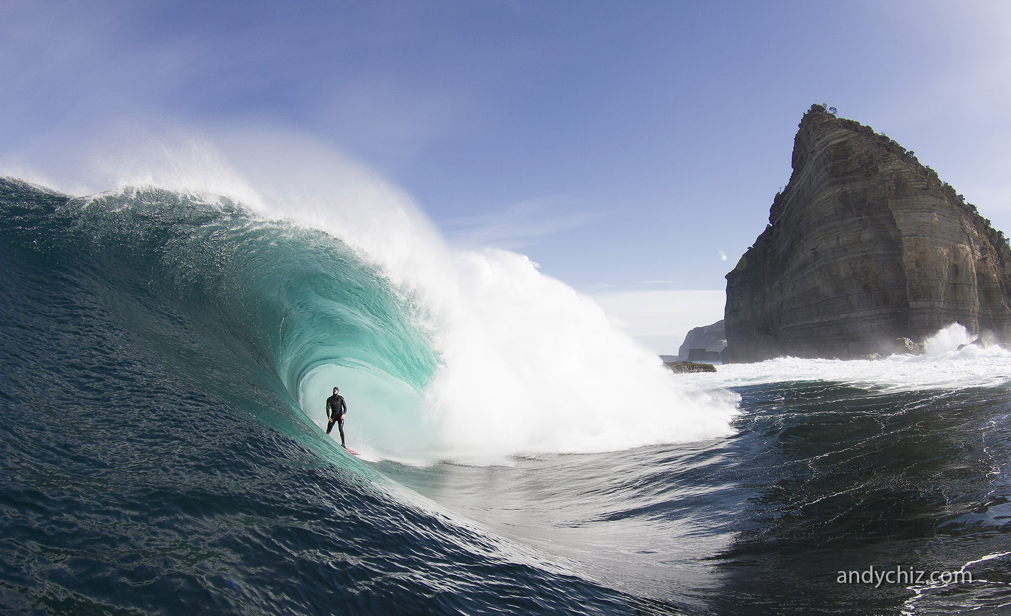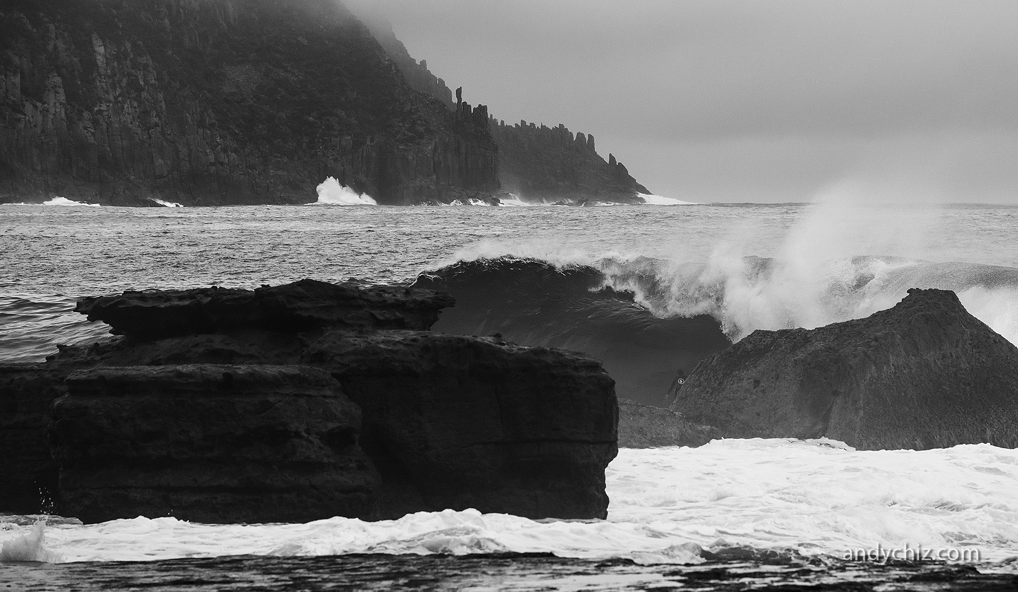 Tyler Hollmer Cross Surfing at Shipstern Bluff in Tasmania