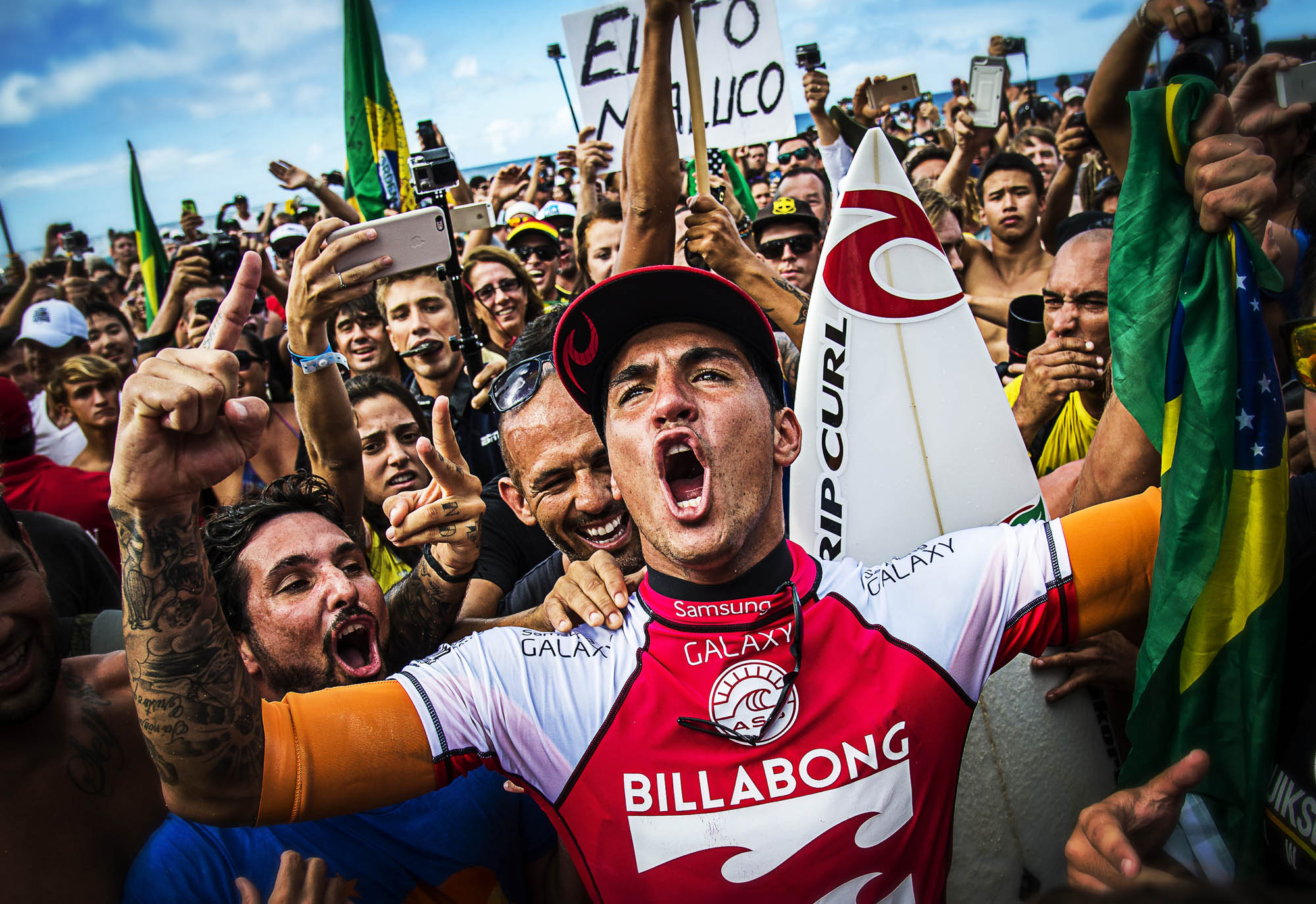 Gabriel Medina (BRA) became the first ever Brazilian World Champion after both rival contenders , Kelly Slater (USA) and Mick Fanning (AUS) were eliminated from the contest. Medina went onto finish 2nd overall behind Julian Wilson (AUS).