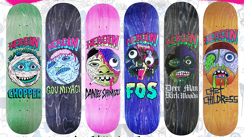 Japan’s Gou Miyagi is undoubtably one of the most creative skaters around. His fun and imaginative approach to skateboarding has shot him into the limelight over the years, with one of his video’s gaining more than 1.3 million views on YouTube. He’s Pro for Heroin skateboards, a rather fitting relationship if you ask me, just look at these graphics.