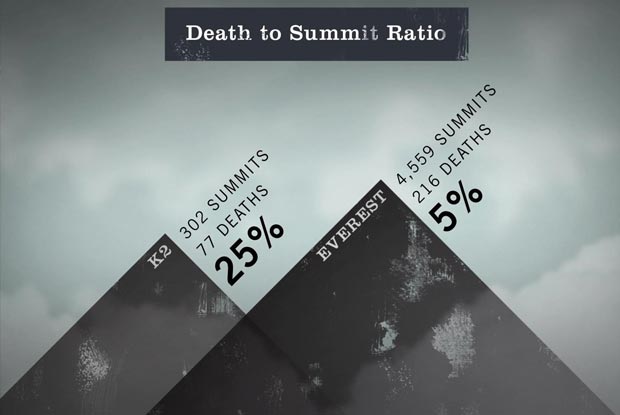The k2 Mountain is one of the deadliest mountains known to man, the 2nd in fact and just short to world’s largest and well renowned Mt Everest. The K2 mountain has been labeled ‘the savage mountain “ due to the extreme difficulty of ascent with a ridiculous 25 percent death-to-summit ratio (compared to Everests 5%), it’s basically suicide With 302 summits and 80 fatalities, about one person dies on the mountain for every four who summit and to push the limits further, it has never been climbed in winter, it’s just too nuts, in comparison K2 makes Everest look like childs play.