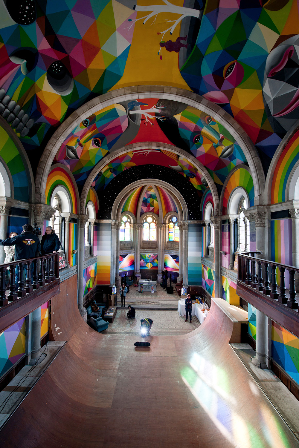 The finishing touches came from Spanish artist Okuda San Miguel giving this place an extreme make-over with his incredible talent, covering the walls and ceilings with his unique signature colourful geometric touch.