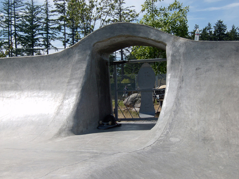 The Orcas Island Skatepark / Scott Stamnes Memorial Skatepark was built in 2002. The founders of the now legendary skatepark design/build firms of Grindline and Dreamland created the park. They built the park by skating and dreaming each zone from the giant bowl to the death box. The park draws skaters & Bike riders from around the world and is a monument to local skaters & bike riders. The park is still a ride to be reckoned with and provides a challenge for both beginners and experts. Watch the Fit Bike crew tear it apart: