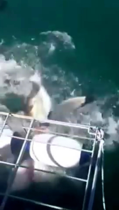 Terrifying Great White Breaks Into Shark Cage