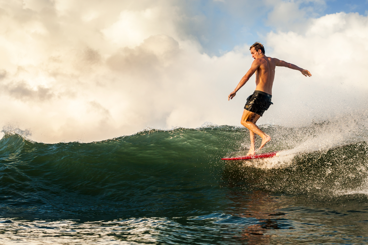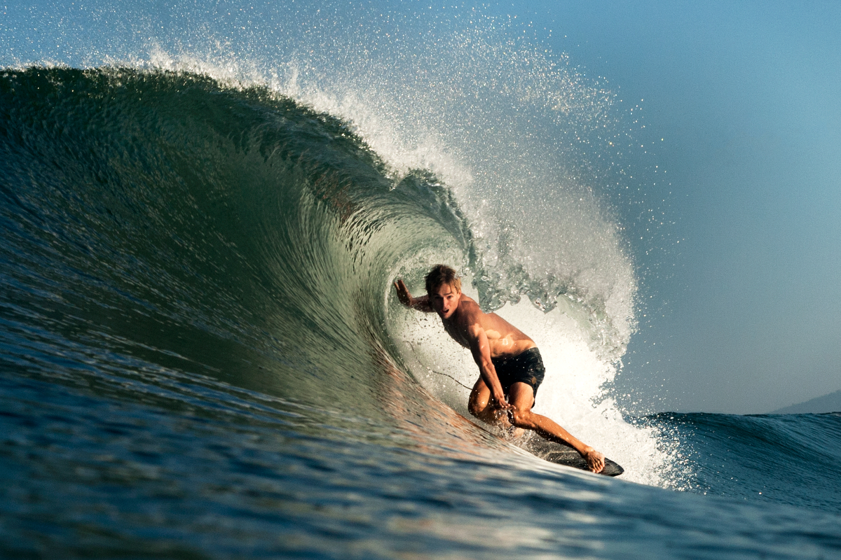 In West Bali, much of the surf is over a sand bottom or relatively flat reef. Small peaks run up and down the beach and crowds are low. It was an opportunity for us to test-ride the different boards on the roof and work with the Temple shapers on a few more in the bay. We ran into our Californian friend Jared Mell, who’d been hunting the peaks for a couple of weeks and he let us in on his secret banks. In the water, Jared is the kind of guy whose enthusiasm is contagious. He’s also got that “you never know what’s coming next” surfing style: one minute he’s laying back in a tube on his backhand – the next he’s doing the same thing riding forehand.