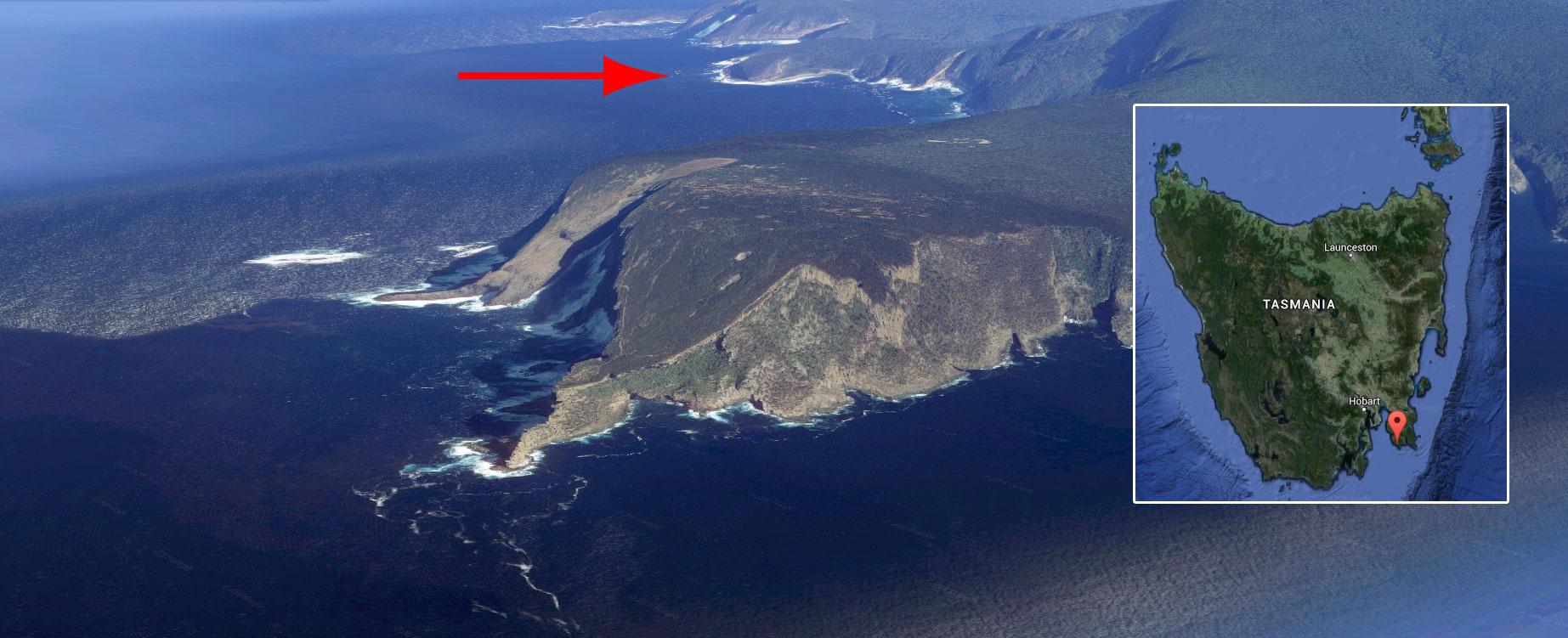 Ship Stern Bluff (aka as Devil’s Point or simply ‘Shippies’ – globally-renowned big wave surfing location on the south eastern coast of Tasmania, Australia.
