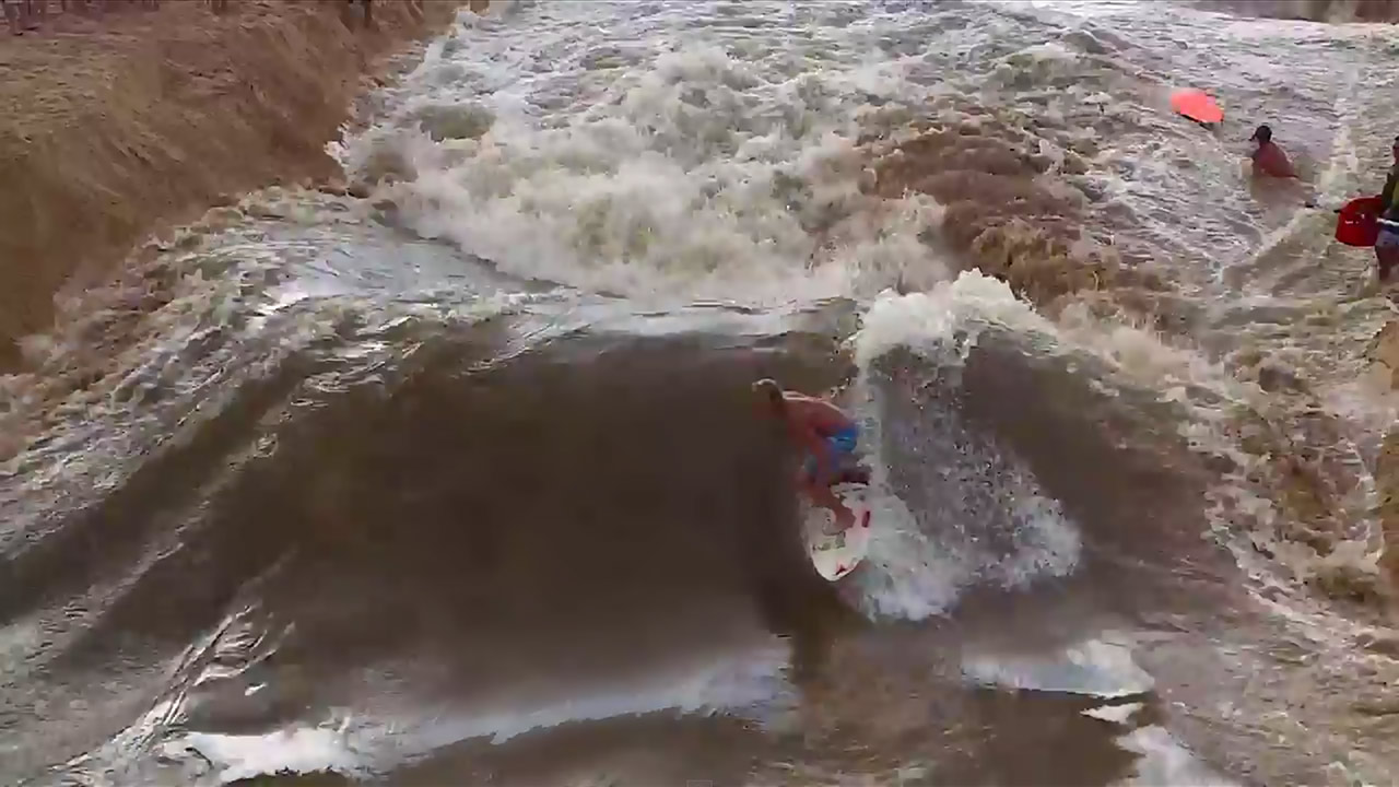 Waimea Bay river is overflowing – J.O.B. and friends open it up and create the best river surfing waves of the year so far for our latest Weird Waves Of The World – video at bottom 🙂