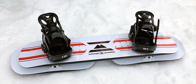 The Crossboard is basically a super short deck with two snow blades underneath, which are attached to the deck with trucks – trucks that perform similar to skateboard trucks.